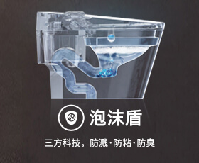 搭載獨特的“泡沫盾2.0”技術(shù),360°無死角泡沫潤壁,在馬桶表面形成致密泡沫層,有效的避免了濺水、粘黏、異味、病菌等難題